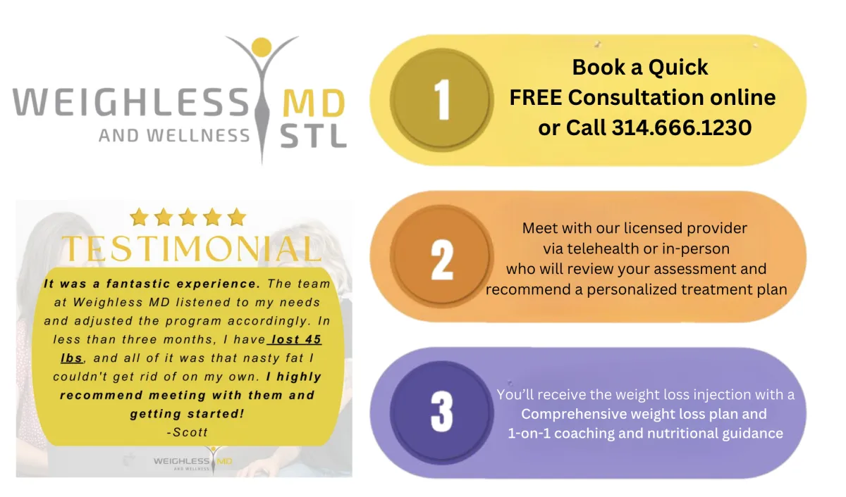 Weighless MD & Wellness St.Louis offers ongoing support and guidance to keep you motivated and on track. We’re with you every step of the way.